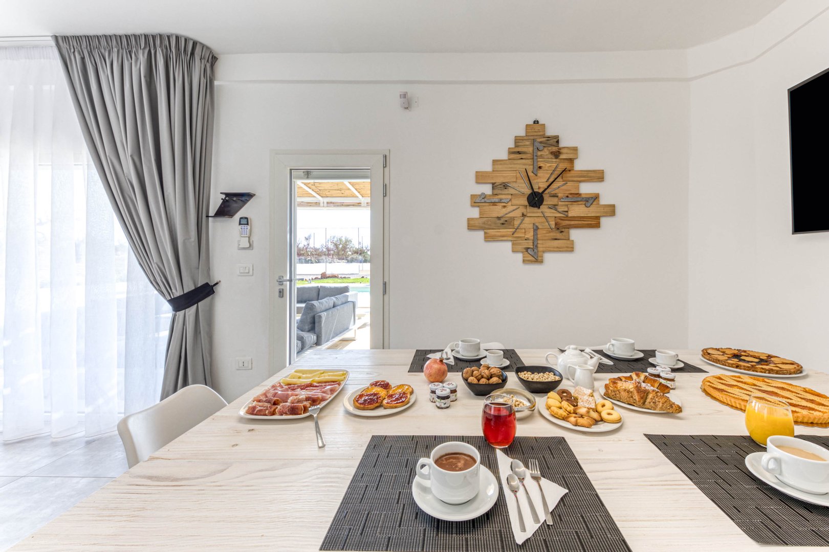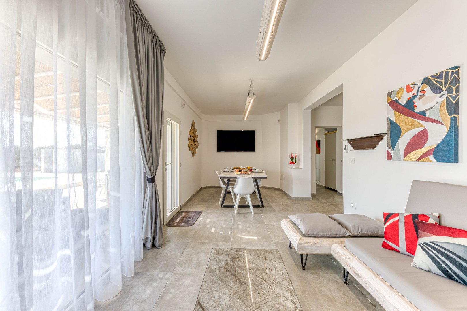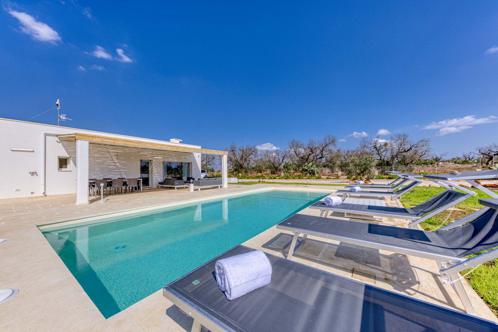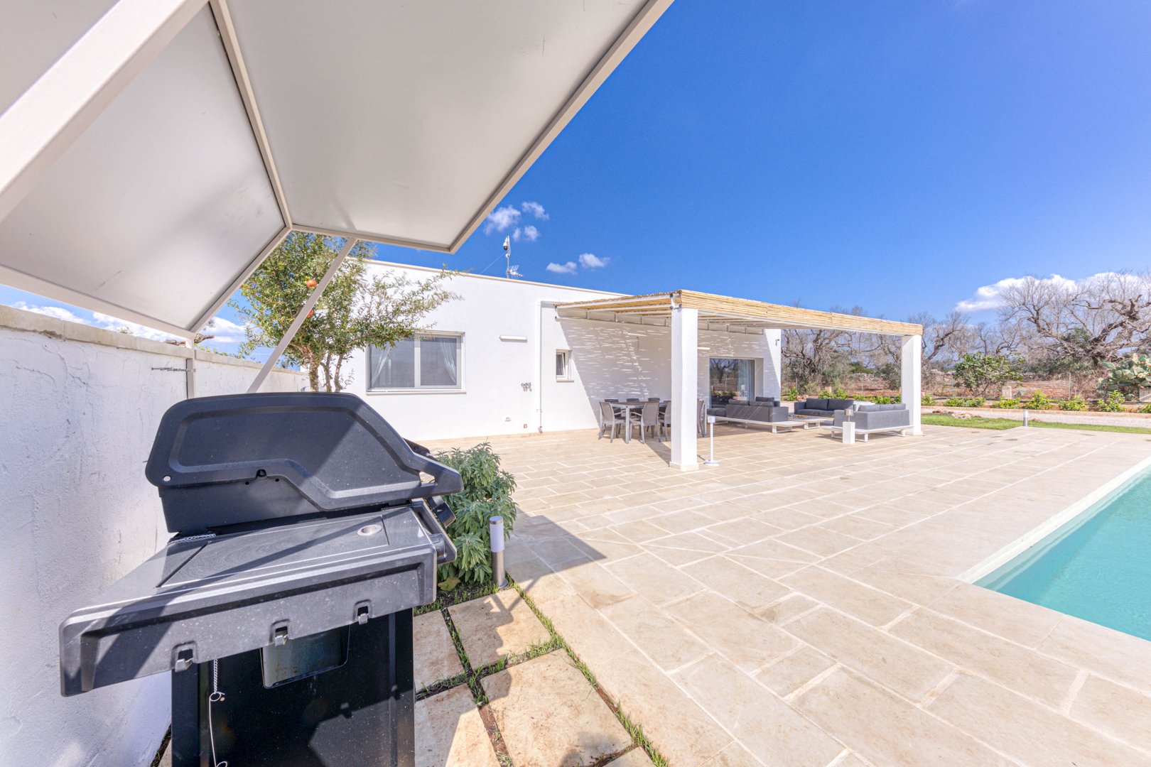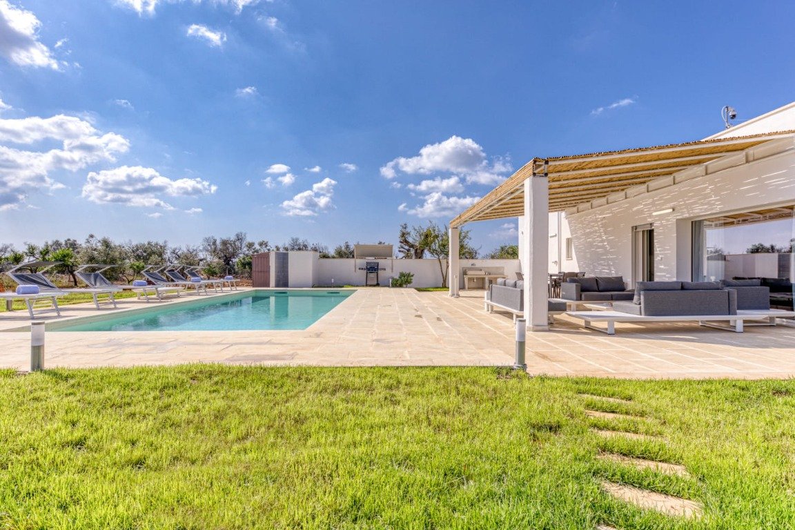 All'esterno troviamo una splendida piscina, living con divani e tavolo esterno, doccia esterna, barbecue, parcheggio all'ombra, campo da beach tennis-volley, area relax....