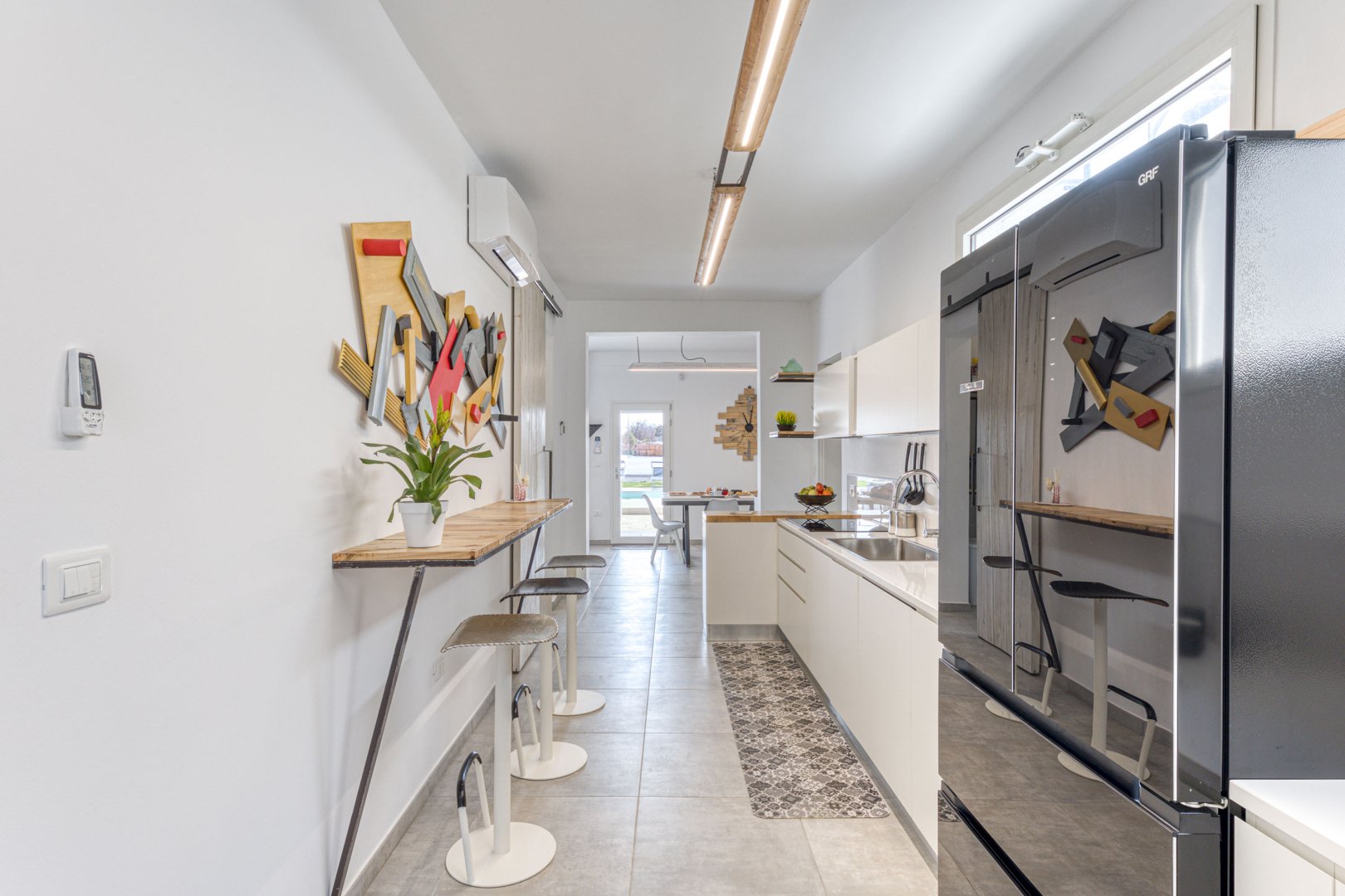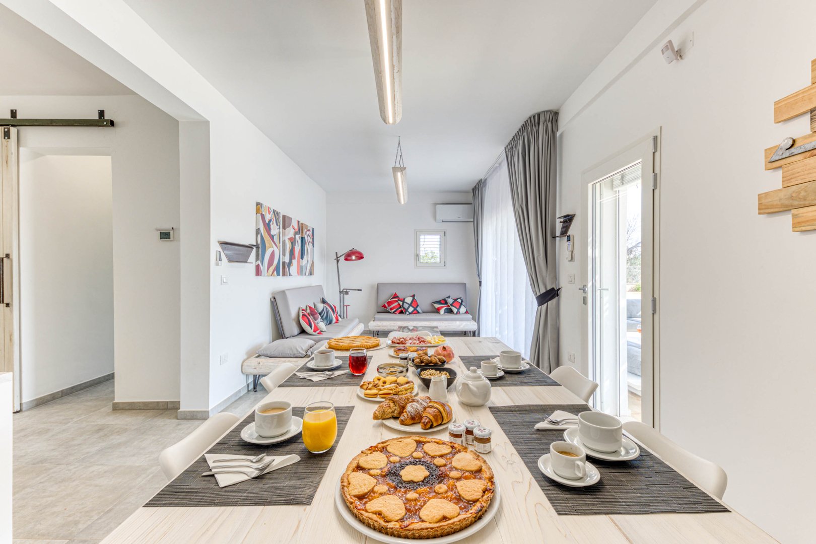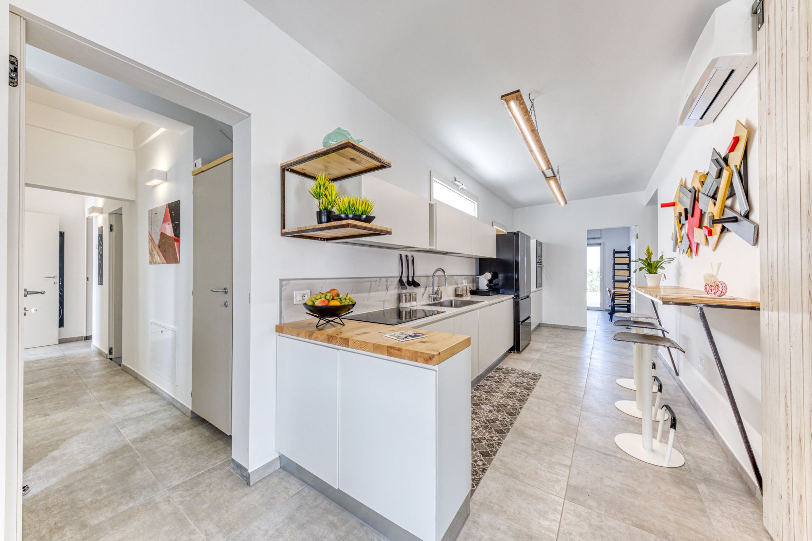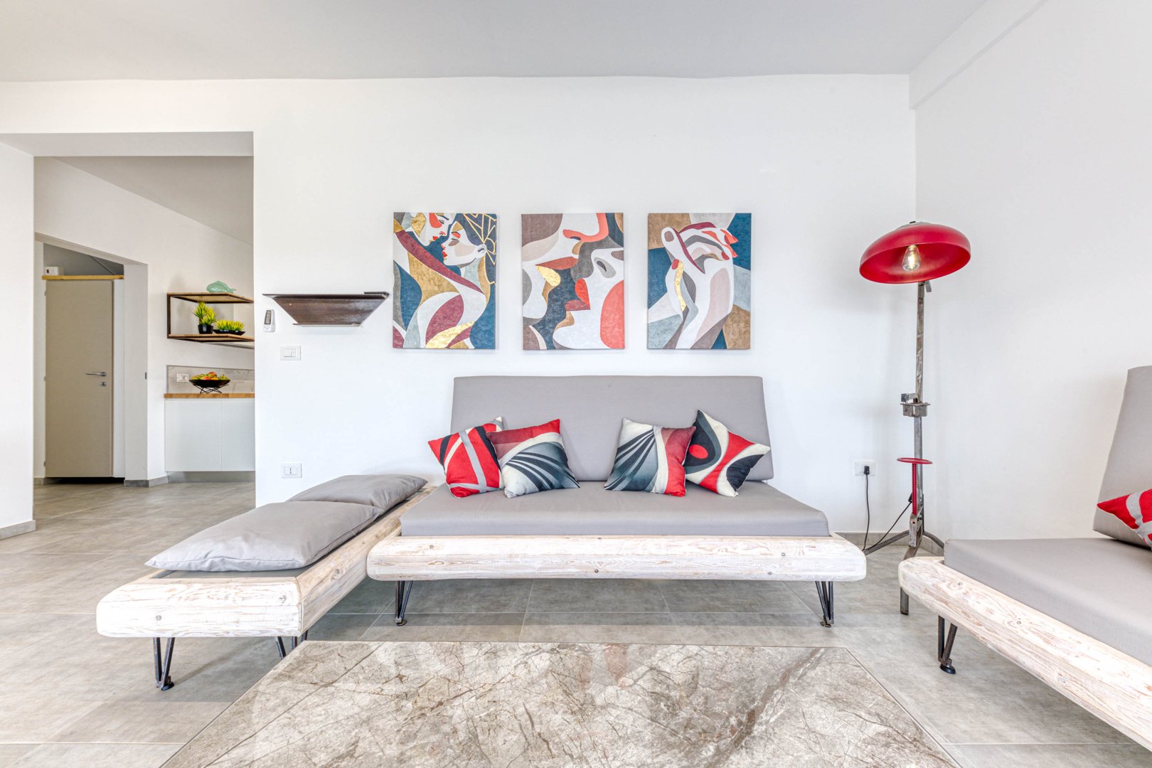 All'esterno troviamo una splendida piscina, living con divani e tavolo esterno, doccia esterna, barbecue, parcheggio all'ombra, campo da beach tennis-volley, area relax....