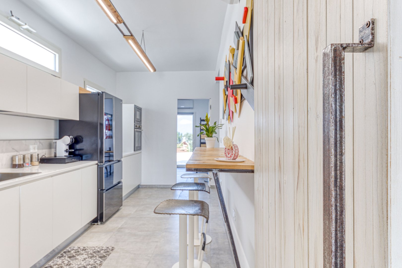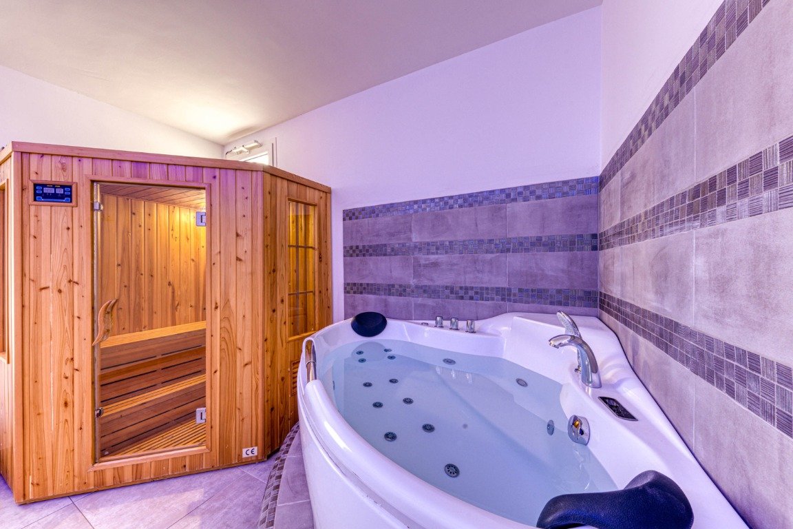 L' interno, oltre a tutti i comfort, presenta 3 bagni, un sistema di riscaldamento a pavimento, un sistema di raffrescamento ad acqua, 5 tv, una sala giochi con nintendo, un centro benessere con vasca idromassaggio due posti e una sauna finlandese, zanzariere, lavatrice, forno, forno a microonde, cucina a induzione, lavastoviglie, macchinetta del caffè, ecc...