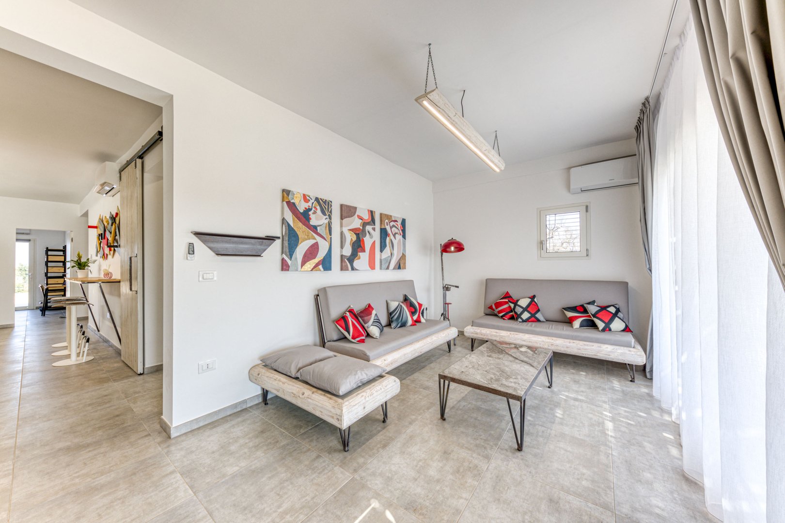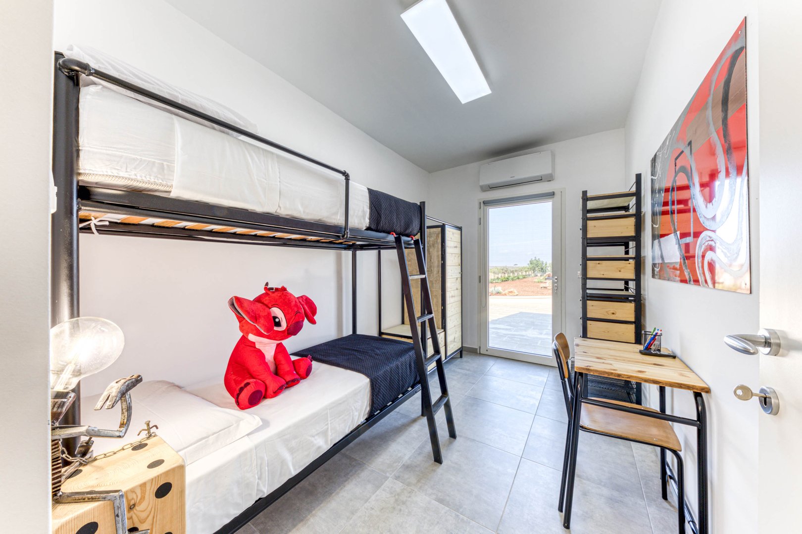 La villa può ospitare ben 12 persone per la presenza di tre camere matrimoniali, una cameretta con letto a castello e una cameretta con quattro posti letto.